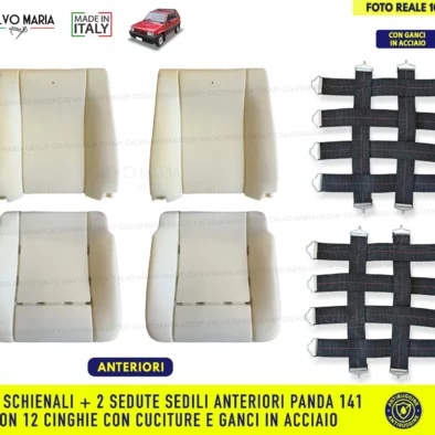 Kit completo 2 imbottiture schienali e sedute Fiat Panda Country Club (1986-2003) con 12 cinghie rinforzate e ganci antiruggine. Made in Italy.