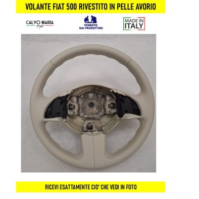 Volante Fiat 500 2007-2015 in pelle avorio – Artigianale